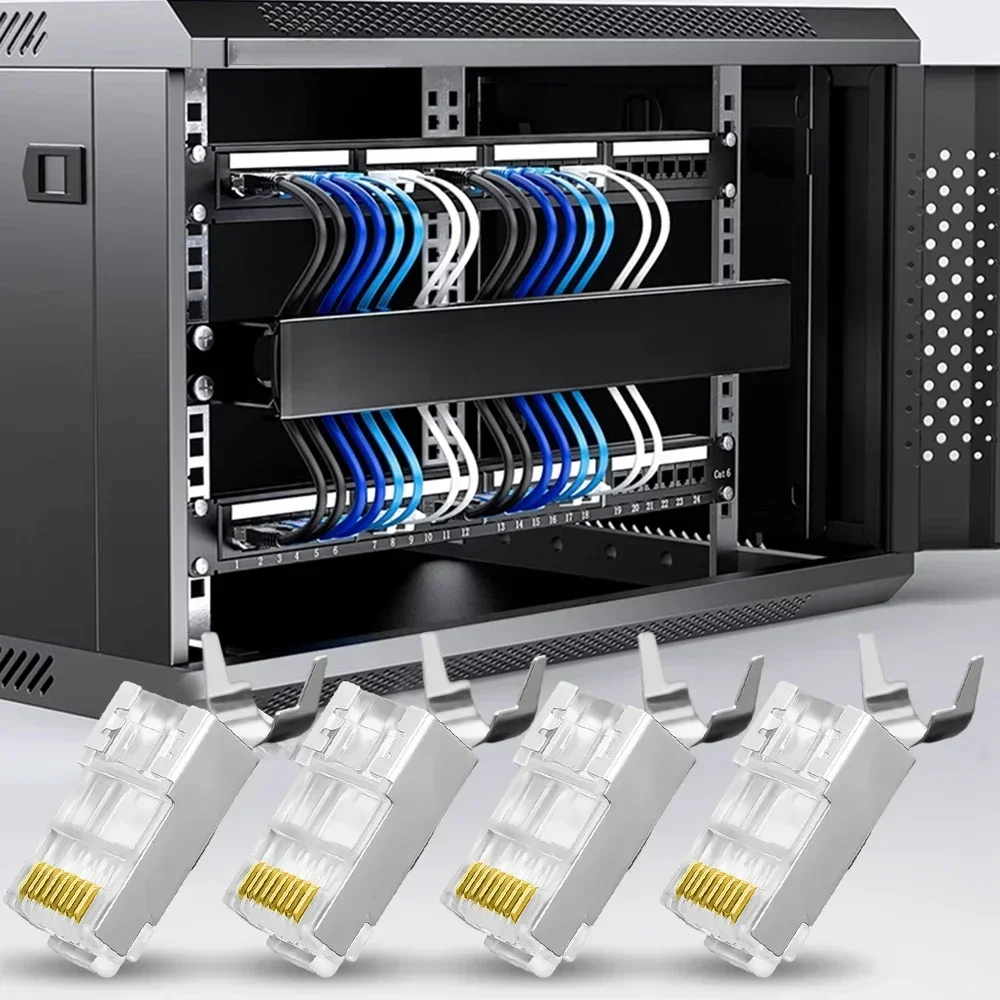 1/10/30Pcs, Pass Through RJ45 Cat7/Cat6/Cat5 Shielded Connectors, Crystal End Gold-Plated 8P8C Crimp UTP Ethernet Modular Plug
