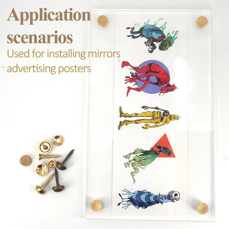 8Sets, Brass Decorative Nail, Mirror Advertising Board Cap Cover Self-tapping Screw, 9mm/12mm/13mm/15mm