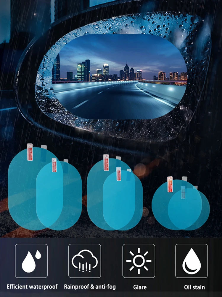 1. This car rearview mirror film has two PET protective film and one nano-adhesive layer. It has high transmittance, anti-fog, anti-glare, anti-mist, anti-oil, anti scratches, waterproof, rainproof and other functions, providing you with unprecedented security and clear vision even ina rainy and foggy days.