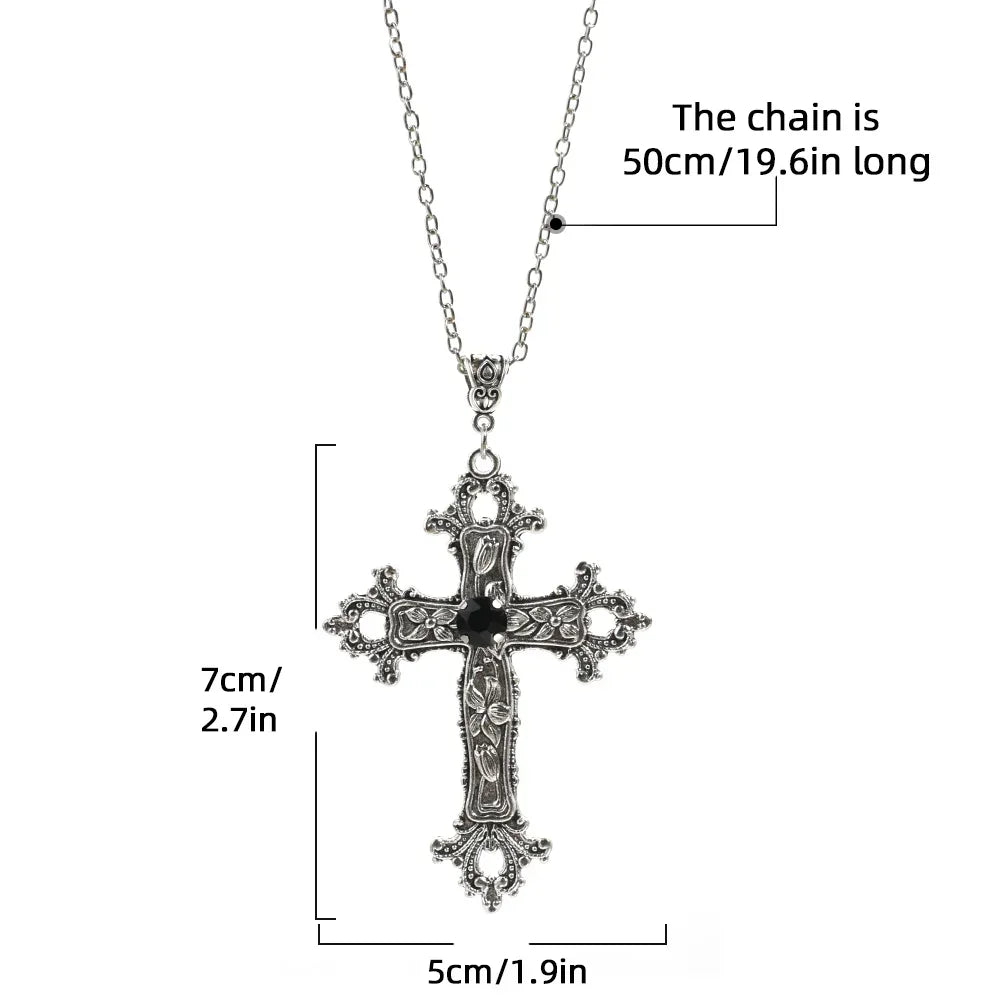 Y2K Punk Crystal Big Cross Pendant Necklaces for Women Men, Gothic Irregular Cross Clavicle Chain Necklaces, Aesthetic Jewelry