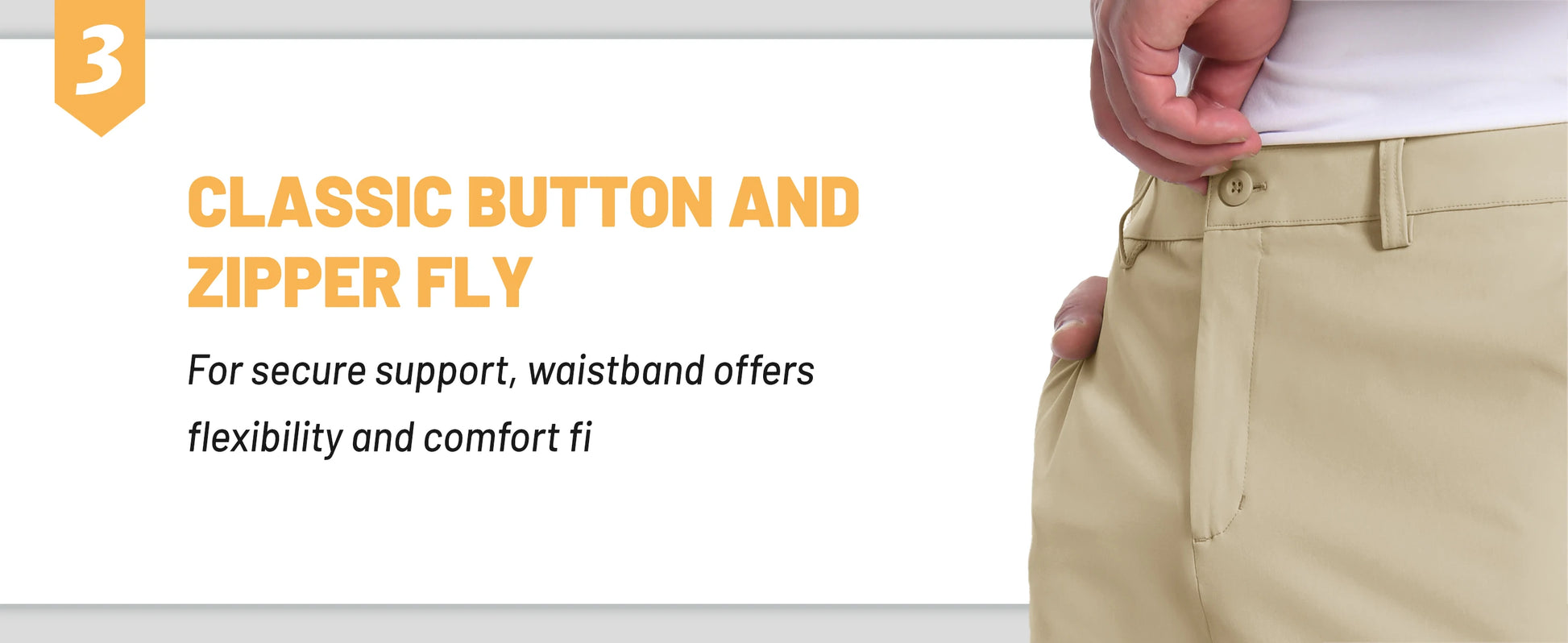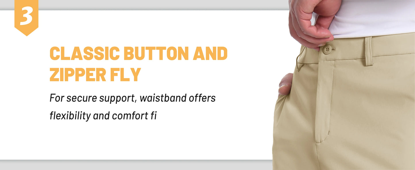 * Elastic Waistband with Zip Fly Closure, more easy Fit.