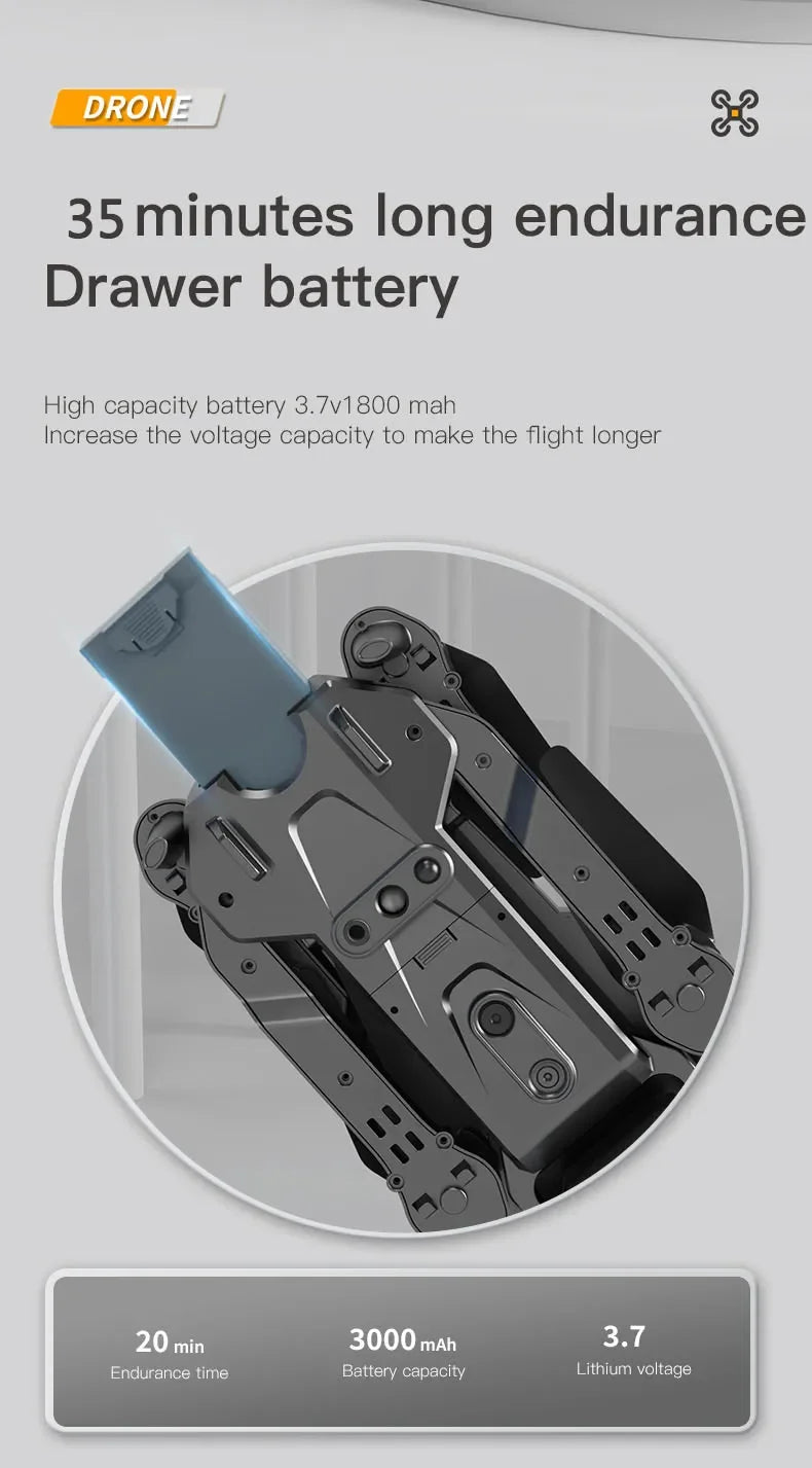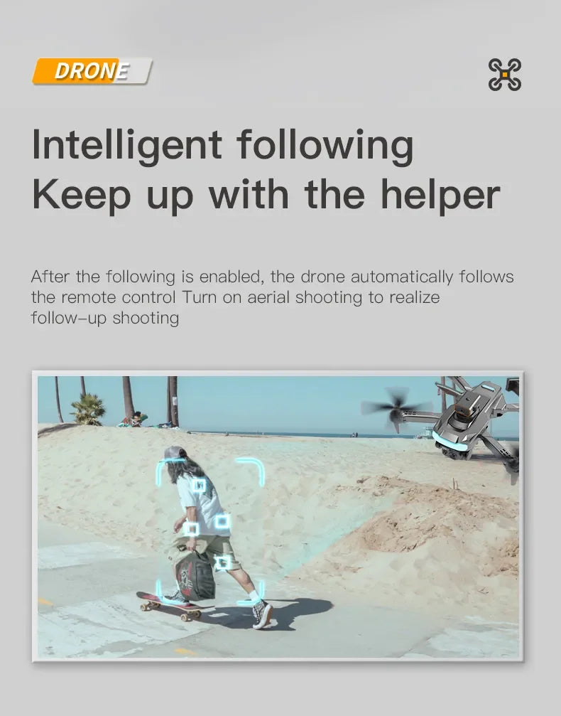 1. The front lens is placed with wide-angle 8K high-definition WIFI, and the optical flow high-definition lens at the bottom can switch the camera angle. The servo gimbal design increases stability, and EIS electronic image stabilization is added to make the picture lines clearer