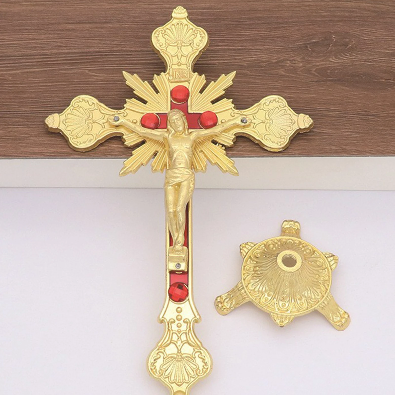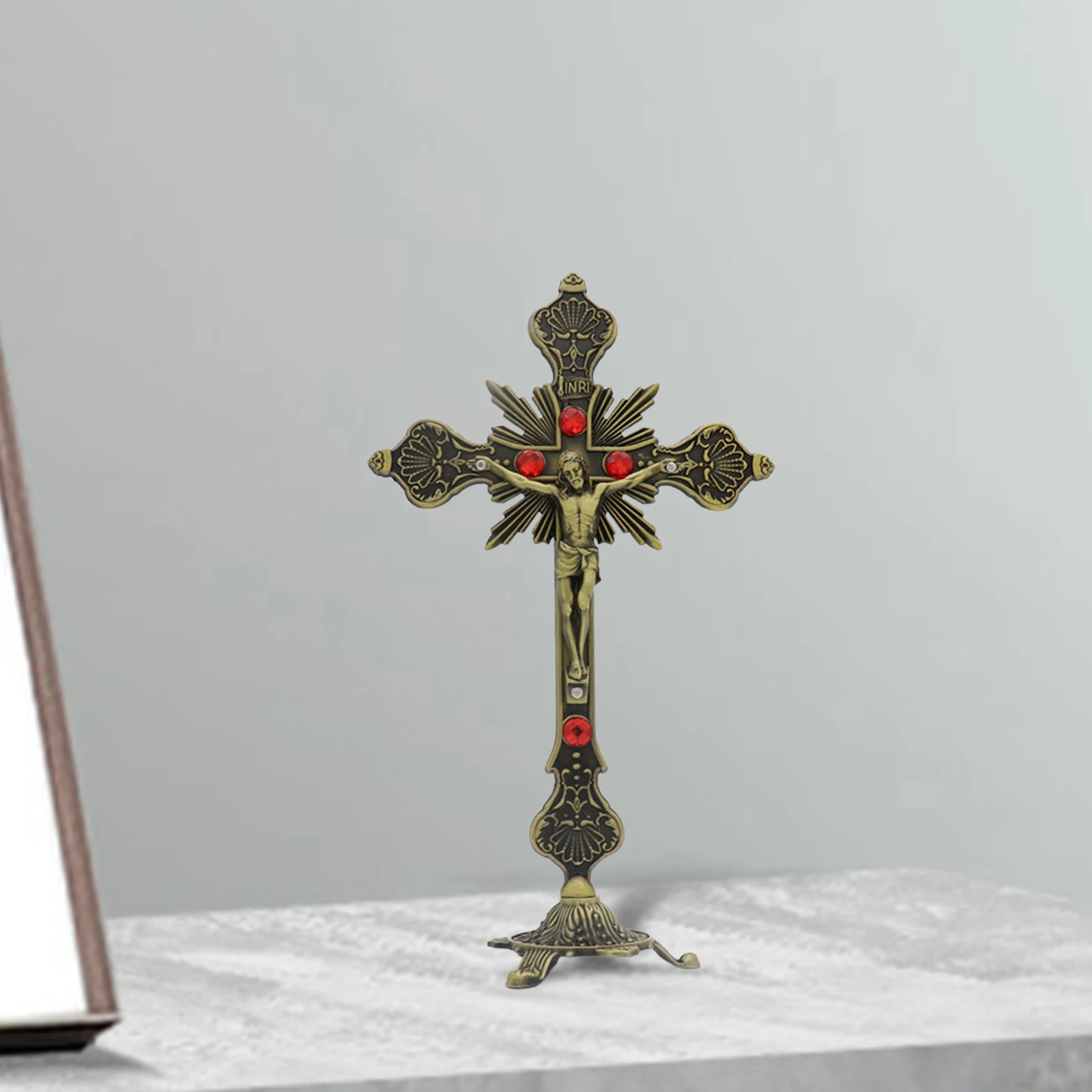 Standing Crucifix measures approx. Height is 25.5 cm / 10.04 inch, an appropriate size for tabletop decorations