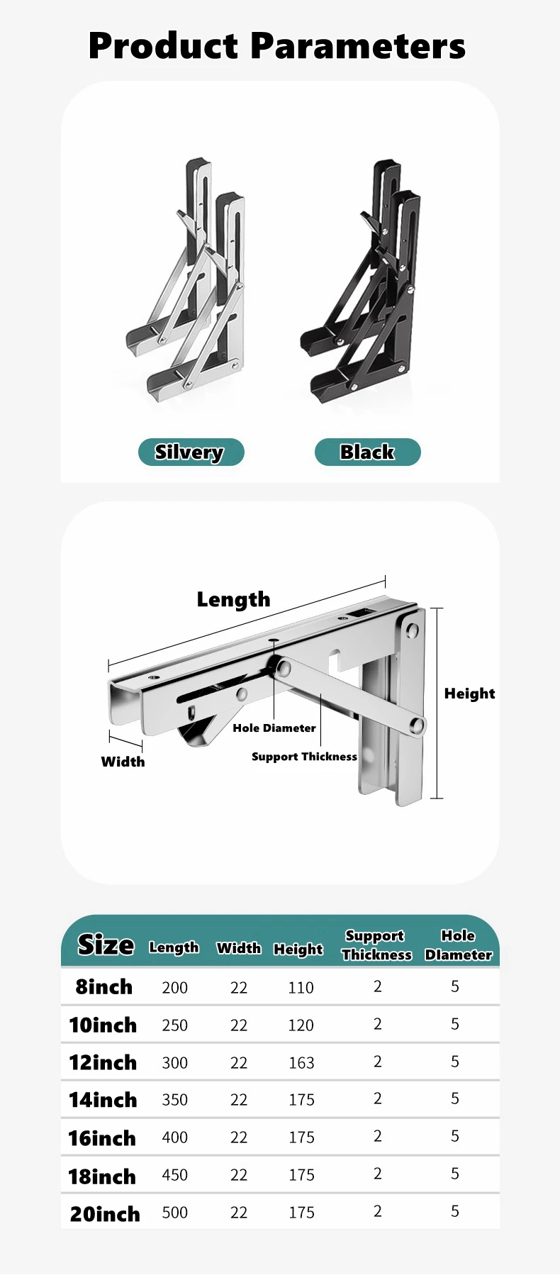 2Pcs, Multiple Sizes Triangle Folding Bracket, Shelf Table Desk, Floating Shelf, Collapsible Wall Mounted Bracket
