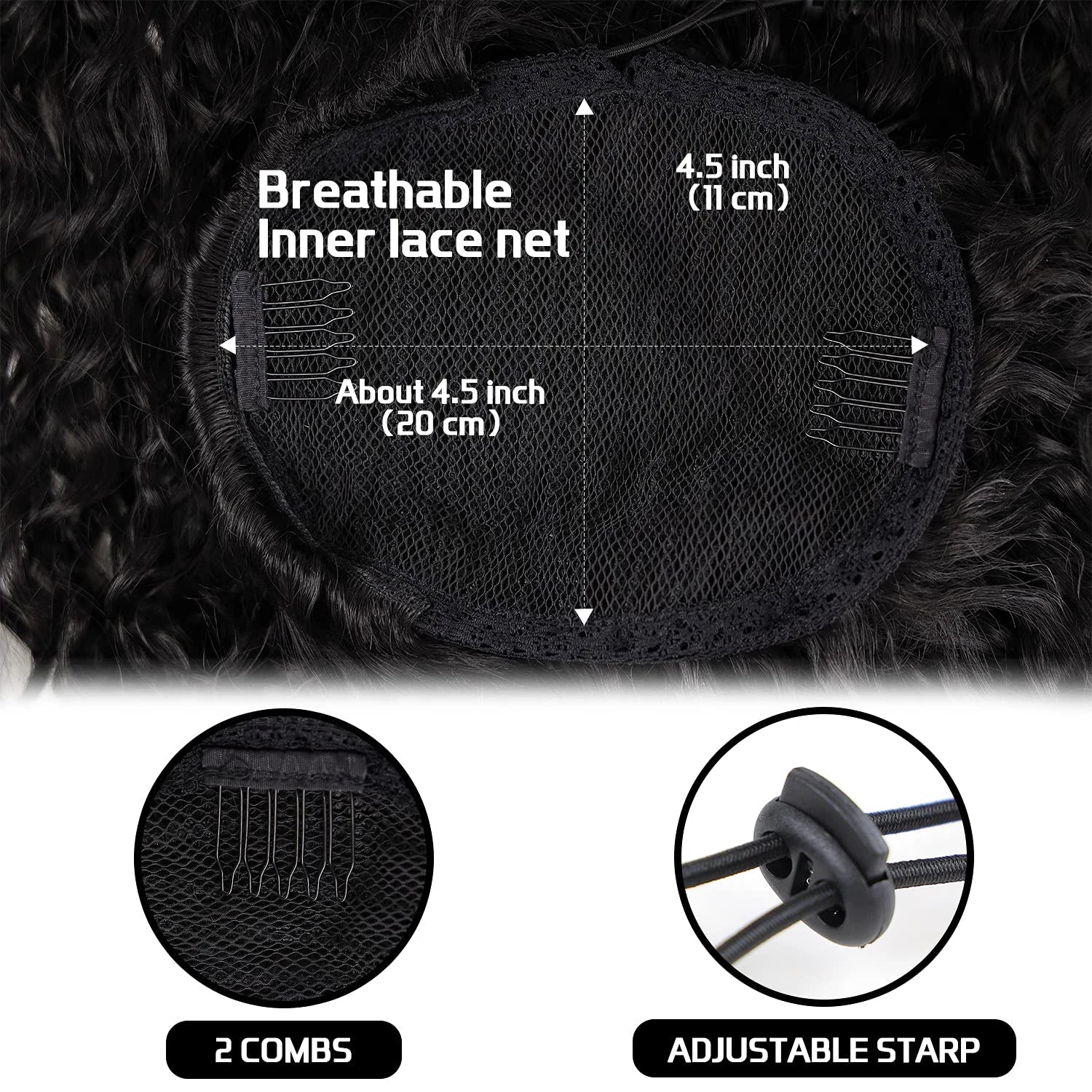 Deep Wave Drawstring Ponytail, Human Hair Ponytails, #1B Natural Black Curly Clip In Hair Extensions For Daily Cosplay, 1 Piece