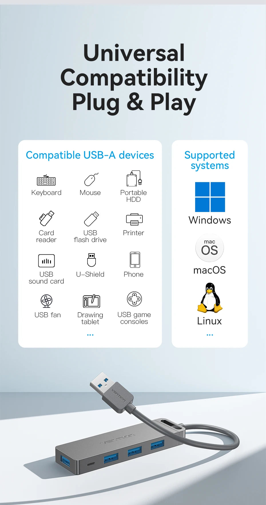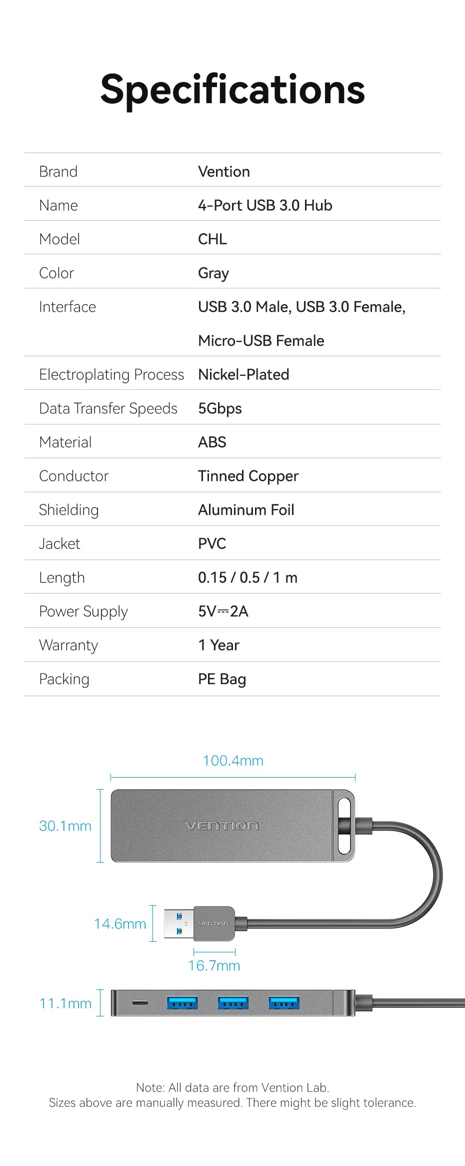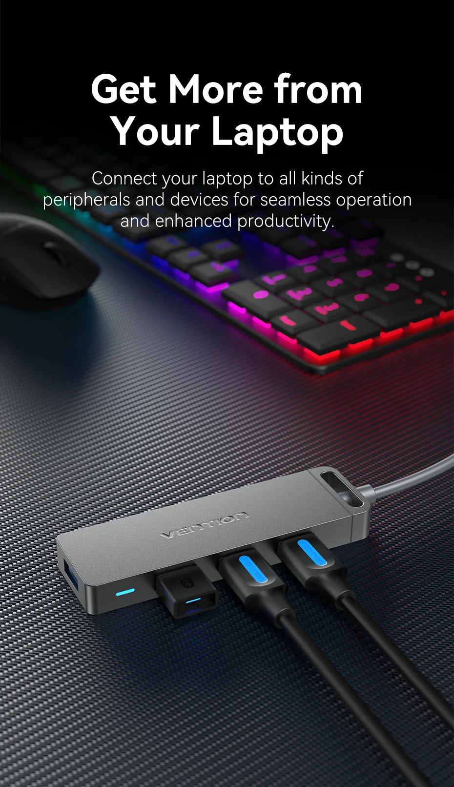 USB Hub, High Speed 4 Ports, Multi USB 3.0 to USB 3.0 Hub Splitter Adapter for MacBook Pro iPad Pro Xiaomi Lenovo USB Hub, VENTION