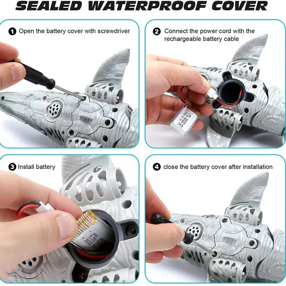 Water dinasour is fun and easy to control! RC Dinasour shoots water into the air like a beluga whale. The propellers do not work outside of water, this keeps kids safe.