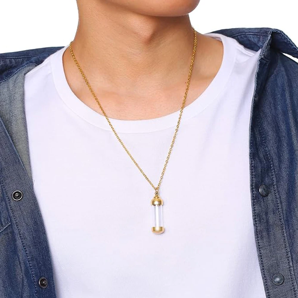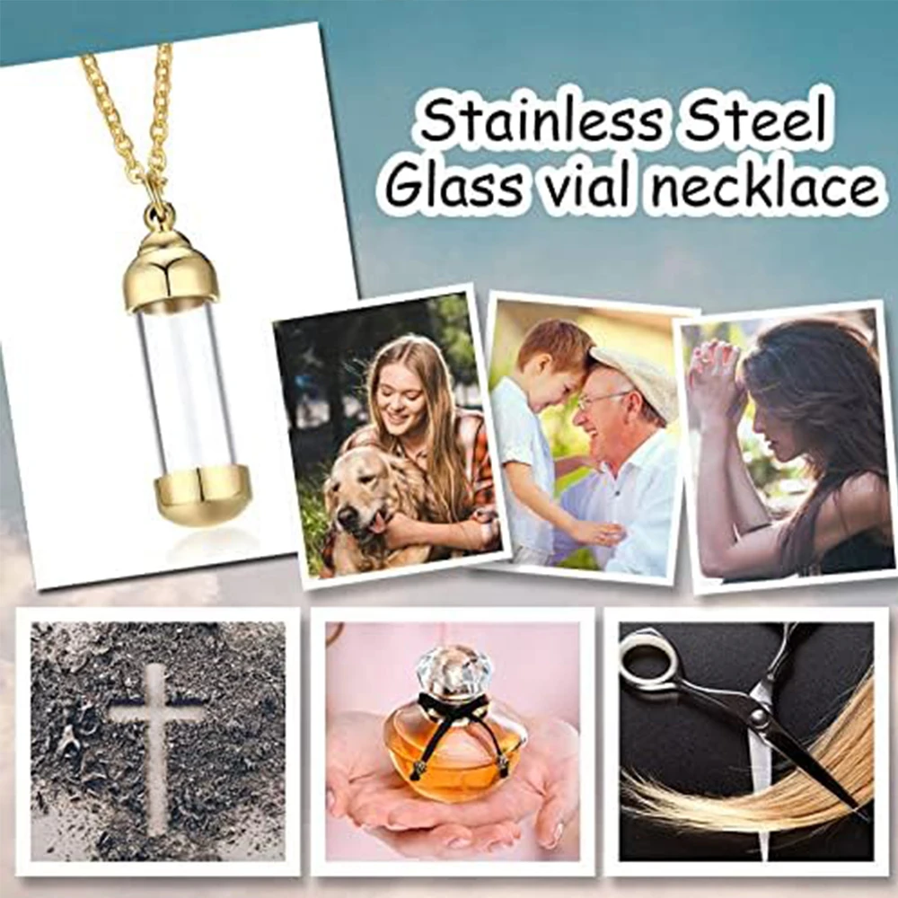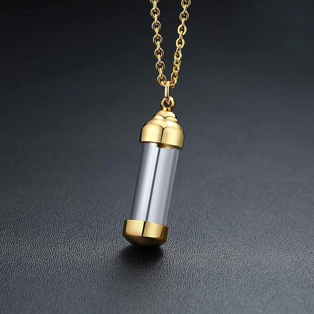 Cylinder Clear Glass Necklace Stainless Steel Glass Heart Vial Perfume Bottle Cremation Urn Pendant Necklace For Women Keepsake